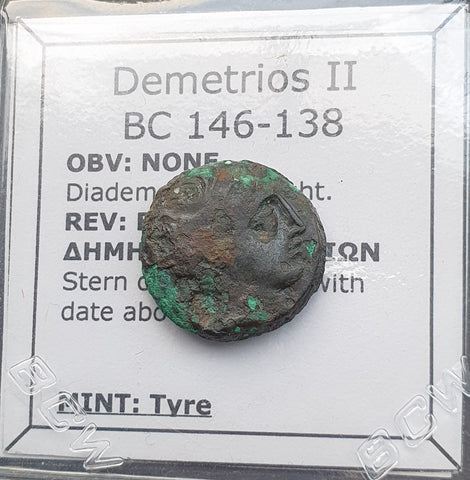 Up for auction is a Greek Seleucid bronze coin of King Demetrios II, minted between 146-139 BC