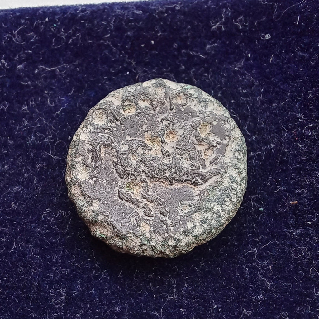 - Horseman riding right; below horses forelegs, lion forepart left; ΛY below hind legs.