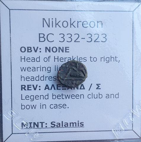 Up for auction is a Greek Cyprus coin of King Nikokreon, 322-310 BC