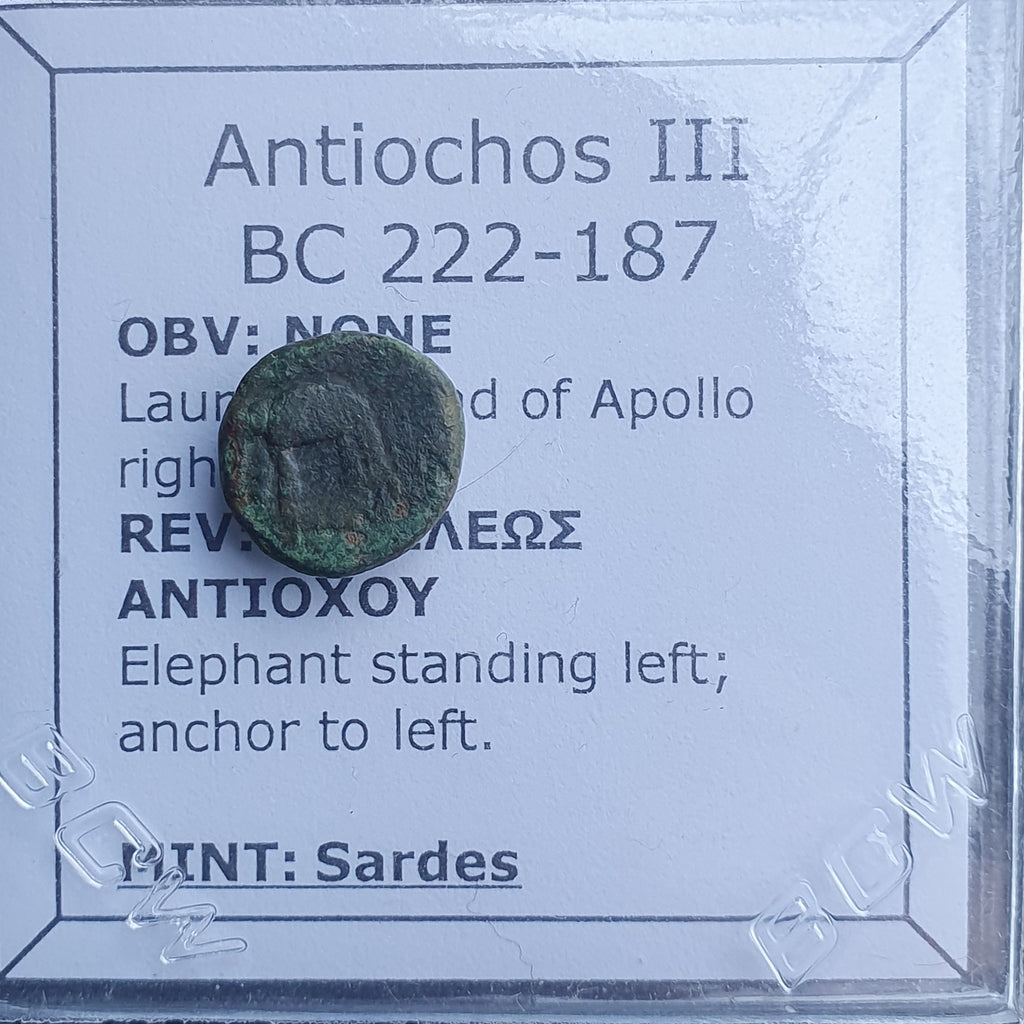 Up for auction is a Greek bronze ae12 coin from Seleucid King Antiochus III from 222-187 BC.