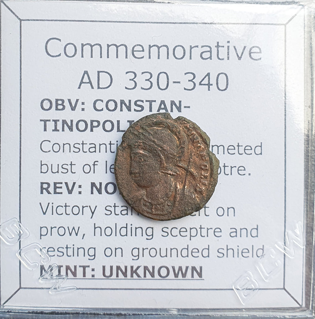 Up for auction is a Roman commemorative issue coin of Constantine I from 330-340 AD.