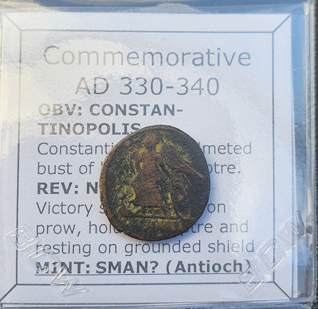 Up for auction is a Roman commemorative issue coin of Constantine I from 330-340 AD.