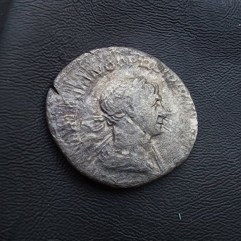 Up for auction is a Roman silver denarius coin of Trajan from 114-117 AD