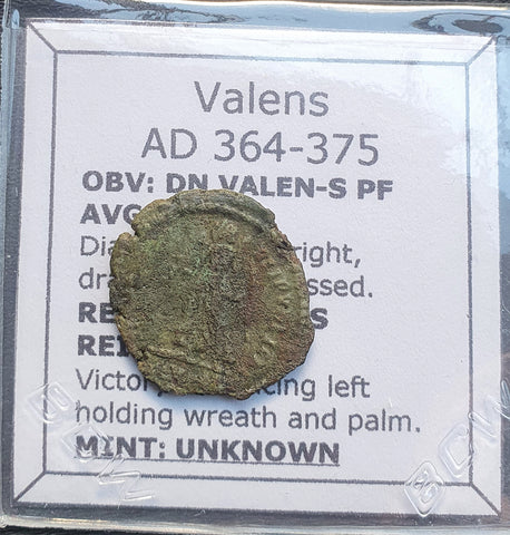 Roman bronze coin issued by Valens from 364-375 AD
