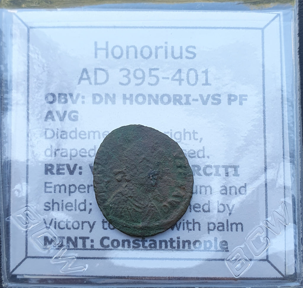 Up for auction is a Roman Bronze coin issued by Honorius from 395-401 AD