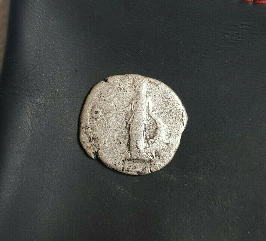 Up for auction is a Roman silver denarius coin of Antoninus Pius from 147-156 AD