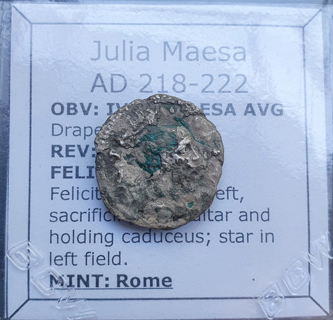 Up for auction is a Roman silver denarius coin of Julia Maesa from 218-222 AD